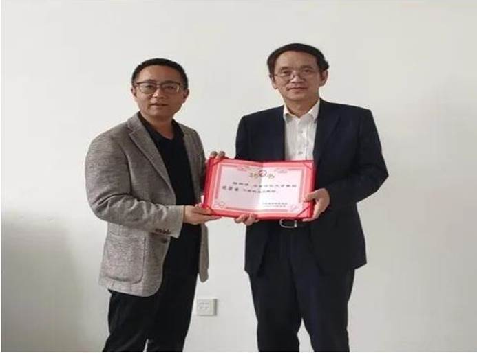 图为李启斌副董事长为周梁云教授颁发客座教授聘书