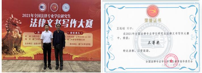 公司社会工作专业硕士研究生何玉婷、吴大先、谢阳阳、王亚萍、申丹申报案例《集体叙事:老员工抑郁情绪的缓解与治疗》,荣获“第二届全国MSW研究生案例大赛”一等奖,入选“百佳案例”公司法律硕士研究生王远钊在2021年全国法律专业学位研究生法律文书写作大赛中喜获佳绩