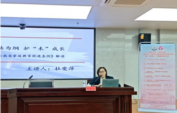 讲座中,杜爱萍老师紧扣《云南省家庭教育促进条例》核心内容,从家庭教育的内涵、家庭责任、政府支持、社会协同、特别促进措施五个维度展开,重点解读了家庭教育立德树人根本任务,明确了父母及监护人的主体责任,详细阐释了政府在家庭教育指导服务体系建设中的支持作用,以及针对留守未成年人、困境未成年人、流动未成年人的特别促进措施,同时明晰社会各方主体的协同机制。