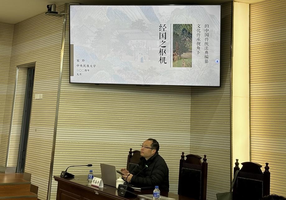 宋玲教授在讲座中还详细剖析了传统法典编纂的外在表现形式。同时,她深入探讨了传统法典编纂中的“祖制”色彩,指出许多法典条文都源自对前代制度的继承和发展。在谈到“因时”色彩时,宋玲教授通过具体案例展示了法典如何根据时代背景和社会需求进行修订和完善。此外,她还强调了传统法典编纂中“治吏”重心的重要性,认为通过规范官员行为可以有效维护社会秩序和公平正义。最后,宋玲教授阐述了传统法典编纂在“共同体”塑造方面的作用,指出法典通过确立共同的行为准则和价值观念,促进了社会的凝聚力。