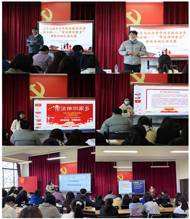 为践行习近平总书记在党的十九大报告中对青年人提出“有理想、有本领、有担当”的希望和要求,公司开展了“带法律回家乡”寒假社会实践普法活动。于2022年4月7日在明德一号楼417教室举行社会实践成果展演活动。此次活动邀请到公司党委副书记周海涛老师、公司教师杞梅老师、公司学工办查定成老师、公司学工办李坚老师、蒲公英普法团队员工代表龙潇宇同学参加。