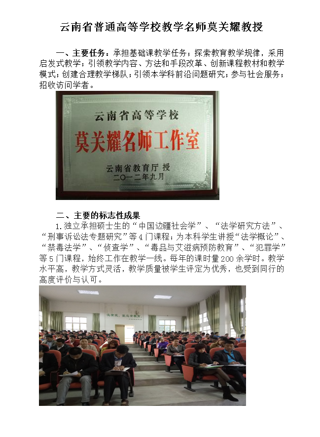 云南省普通高等公司教学名师莫关耀教授