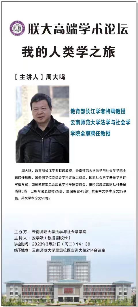 联大高端学术论坛:长江学者周大鸣教授主讲:我的人类学之旅