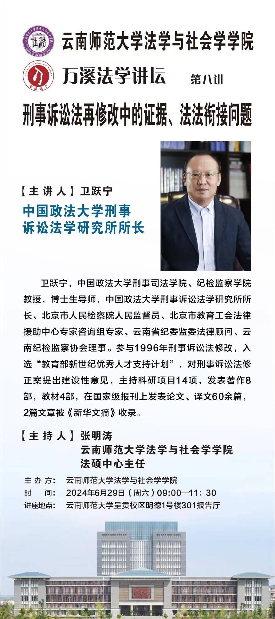 万溪法学讲坛第八讲 主讲人:卫跃宁 《刑事诉讼法再修改中的证据、法法衔接问题》