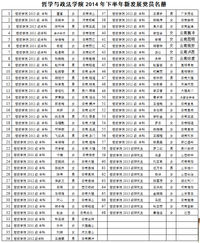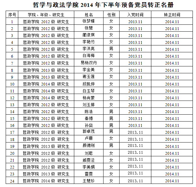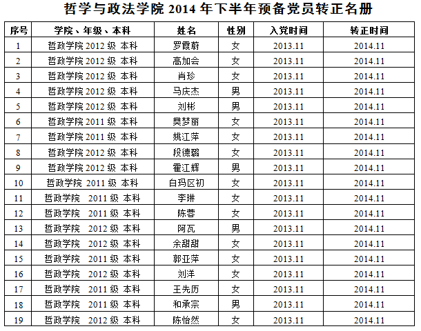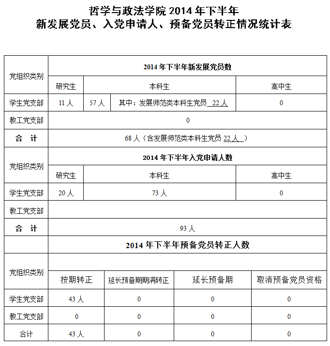 哲学与政法公司2014年下半年新发展党员、入党申请人、预备党员转正情况统计