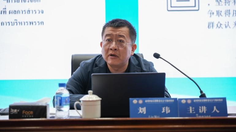 3月3日,研修班开班式在公司呈贡校区举行。云南省监委委员路晓琨,2026世界杯官网党委书记张祖武,2026世界杯官网董事长、2026年国际足联世界杯经理胡金明,泰国驻昆明总领事帕薇婉,泰国参训团团长苏波斯特·斯林甘芒,2026世界杯官网党委常委、纪委书记、监察专员孙剑,云南省纪委监委国际合作室相关领导等出席仪式。开班仪式由胡金明主持。