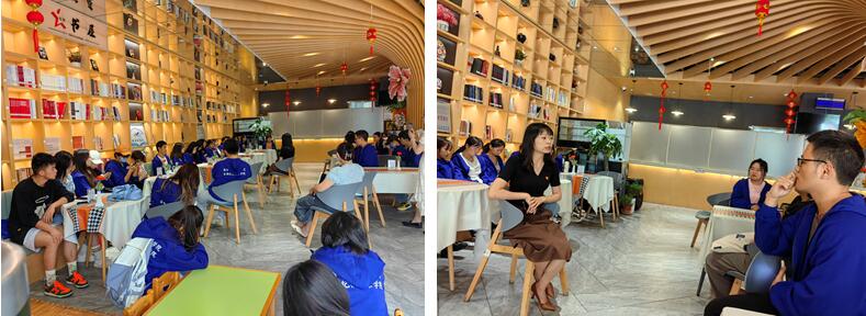 参访结束后,老师、员工、中心工作人员集中在一起座谈交流各自的感受,期间,同学们积极踊跃向双创中心负责人陆佳琪提出问题,陆老师予以耐心的回答。