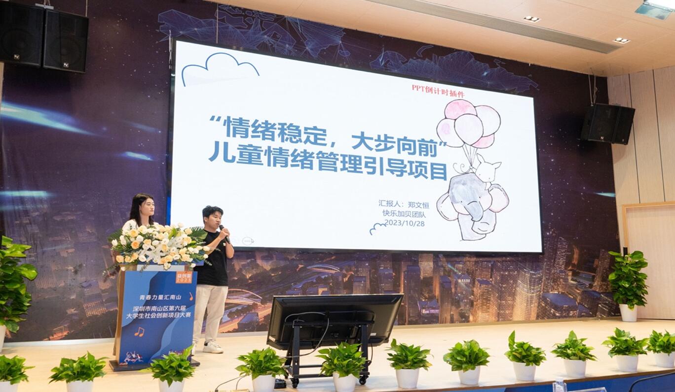公司共有三个项目入围决赛,分别是由公司21级冯恩健和22级郑文恒、罗慧倩等社会工作研究生设计策划的“自助、互助、助社会——‘馨星计划’戒毒同伴员能力建设项目”、“情绪稳定,大步向前——儿童情绪管理引导项目”、“‘心理茶馆——减压赋能快乐同行’社区老年人心理减压服务项目”。