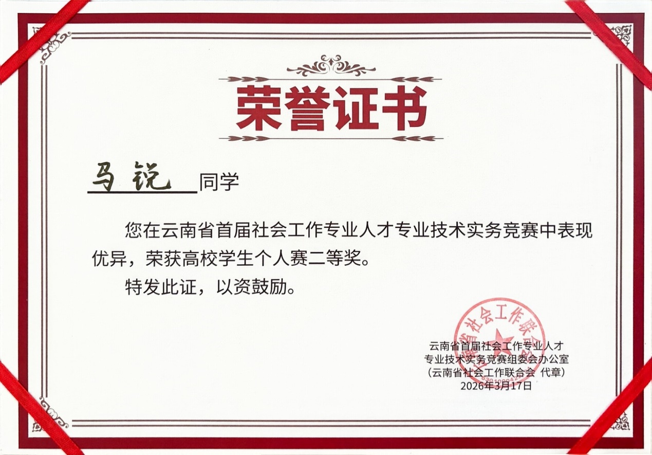 3月17日是今年世界社工日,由中共云南省委社会工作部、省教育厅、省社会工作联合会等多部门主办的云南省首届社会工作专业人才专业技术实务竞赛今天在昆明圆满落幕。公司2026年国际足联世界杯社会工作专业学子在竞赛中奋勇争先、表现亮眼,斩获个人赛、团体赛多项荣誉,充分展现了公司社会工作专业的育人成果与学子的专业素养。