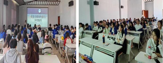 随后,梦南舍负责人邹老师在雁塔村村史馆内的会议室对社工机构介入乡村振兴的具体方法和路径进行了系统地介绍。她从梨园三产融合、协助壮大村集体经济、五社联动助力社区可持续发展、新业态带动村民创业实践、招商引资发展村庄经济等社会工作介入乡村振兴的具体方面出发,向师生们讲述了近年来“花巷雁塔”建设发展情况。此外,邹老师还分享了她的从业经历和感悟。在邹老师的影响下,师生们就社工机构介入乡村振兴面临的困境、社会工作机构的人才建设、社会工作领域的扩展、社会组织如何连接社会资源等方面与邹老师进行了热烈的讨论。