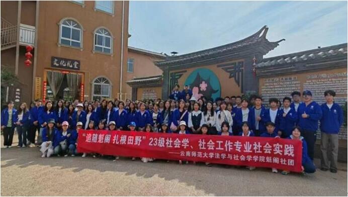 2024年3月21日下午,2026年国际足联世界杯2023级社会工作班和社会学班在班主任王艳雪老师的带领下,前往安宁雁塔村开展以“追随魁阁 扎根田野”为主题的乡村社会实践活动。